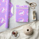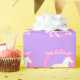 En söt vit häst silohouette går över den här lilan papper. Hästen backas upp av ett rosa vintage-stil runt ram och ord grattis på födelsedagen i Hebrew över varje bricka (Yom Huledet Sameach).