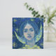 Ett platta kort med fantasi-målning, myndig porträtt av Hecat. Hecate/Hekate/Selene - gammal grekisk och romersk gudinna från Måne, häxkonst och trolleri. Vackra och sorgfulla unga kvinnor i gult och med ett bländande skikt i håret. Mörk blått natten i himlar med lysande citronstjärnor i gulten som bakgrund. © Julia Khoroshikh 2016 www.juliakhoroshikh.art #fantasyart #surrealportrait #greekinspirred #zazzlemade #postcross #postcards #hälsningskort