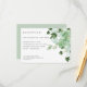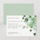 Designat för att samordna med vår uppsamling av Eucalyptus Grove bröllop, har detta botaniska mottagningskort en sprej av löv av vattenfärg, grönt eucalyptus och ömtålig snöbärsblad, som täcker mottagningsdetaljer, tidpunkter och adress Indikeras för elegant vinter botaniskt bröllop eller fall eller höst eller för botaniskt eller trädgårdigt firande. Koordinerad till Hedera-samlingen. Kortets omvända i matchande grönt färg.