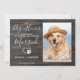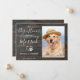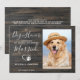 Låt din bästa hund meddela att ni ska gifta er med det här moderna och eleganta 'Hedershund' tillkännager 'Mina Människor Giftar Sig' hund kort för att meddela att ni ska gifta er. Anpassa med ditt favoritfoto och personifiera med namn, datum (frivilligt) och förlovningsmeddelande. Det här förlovningskortet för hundar kommer att bli en hit bland din familj och vänner. COPYRIGHT © 2020 Judy Burrows, Black Dog Art - Alla Rättigheter Förbehållna. Hedershund Rustikt Foto Husdjur Bröllop Förlovningsmeddelande