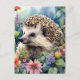 Vykort har vild porträtt av en lämnat häckande häckfisk, omgiven av massor av färgstarka blommor. En botanisk blommigt med ett litet, spikigt däggdjur, populärt som exotiskt sällskapsdjur!
