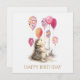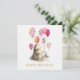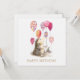 En söt vattenfärgshög som håller på en ballong i Grattis på födelsedagen hälsning och önskar dig en mycket speciell födelsedag hälsning på baksidan