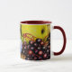 Daglig bra konst mugg med höstfrukter: vild plommon, björnbär, elderbär och ro-hips. "Frukt från Hedgerow"-utskriften hämtas från originalteckningar på hett press pappert i vattenfärg av Sarah Trett för www.mylittleeden.com