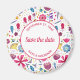 En vattenfärgsmålning av blommor och löv i rik färg som är spridd på vit bakgrund. En fantastisk samordning av Spara datum magneter som en påminnelse till dina gäster. Ändra texten till kostym i firande.