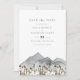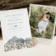 Detta bröllop spara datumet-kort har boho-vattenfärg berg och färgrika vildblommor med en enkel och minimalistisk design. Detta är den perfekta inbjudan till en vår- eller höstbergbröllopsfirande. Redigera enkelt de flesta formuleringar och byt ut fotot på baksidan för din personliga touch.