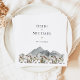 HEIDI Bröllop Collection har en boho vattencolor wildblommor vid basen av ett berg. Den här teckningen paras med en kombination av tidslasserif-teckensnitt som skapar ett modernt bohemiskt utseende. Para ihop den här dockan med fullt HEIDI-samling för hela händelsemetoden.