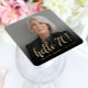 Den här anpassningsbarnas 70-årsdag-pappra underlägg innehåller gästen för hederets personlig foto, namn och födelsedag, tillsammans med frasen "hej 70!" i guld-elegant-kalligrafiskript. Med en mörk skärm kan du göra så att texten visas. Ett underbart sätt att fira någon som blir sjuttio!