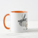 Hej höstcitat på ett stiligt mugg med en orange inuti och handtag, och en söt mängd dekorerade pumpor. Modern vattenfärgspumpor i vit orange och taupe.