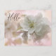 Ett vykort med ett foto med ett äpple träd gren som visar sina vackra vita äppelblommar.
