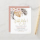 En rustik och elegant babydusch med modern guld-manusskrift och en blommigt med vattenfärg. Den gröna färgen finns i det övre lämnat hörnet och omfattar torkade handflatan löv, pampasgräs, handflatan fronder, orkidéer och rosa blommor. "Hej Baby!" visas nedan i chicens kalligrafi med dina händelsedetaljer nedan i enkel typografi. I högernas hörn i grund finns balansen mellan Faux guld och ge och glitter och tillför lite gnistra till extra! Kort tillbaka till en bohemisk dammig rosa färg med en vit bricka mönster. Redigerbar online, ändra bara ordalydelsen i mallrutorna. Utforma dina egna inbjudningar för utskrift och personlig! Detta ökengröna tema är perfekt för vår, sommar och fallduschar. Som en del av budgetvalet för Zazzle är lakan inte en vanlig storlek eller papper kvalitet för inbjudan. Om du vill ha den här designen på ett inbjudningskort kan du hitta den i vår butik eller använda på Zazzle Make Maskin för att överföra den till valfri produkt. Du kan gärna meddela mig om du vill matcha babyduschspel, recept-kort, tackkort, skyltar, infogningar eller andra anpassningsbar du har - jag kommer att vara lycklig för att hjälpa till!