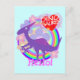 Hej Flower Lila Dinosaur Postcard. En söt liten lila tecknad dinosaur Dilofosaurus med blommor och regnbåge färg och ett rött hjärta som säger "I kärlek Dinosaurs" vykort. Detta underbara dinosaurievykort är helt anpassade! Ändra texten "Hej!" och lägg till bilder och texter! En liten lycklig-Hej-blommor-dinosauriekort, skicka till en dino fläkt!