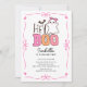 Öka din lilla flickas födelsedag med vår fantastiska inbjudan till rosa och vita Halloween fest, med ett vackert spöke som säkert kommer att glädja sig. Den charmerande designen visar den lekande frasen "Hej Boo" i pulserande rosa och orange, elegant inramad av en coquette-butik, skapar den perfektens val för en söt Halloween-temad födelsedagsfest. Vänner och familj i inbjudan som går med i roligten med denna visuella inbjudan som anger tonen för ett spooktaculärt firande.