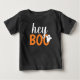 Den moderna och söta "Hej Boo" Halloween-grafiktskjortan har text i orange och vit text med ett litet spökaccent. Finns i många stilar och storlekar för hela familjen.
