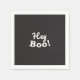Bo! Meddelande på en napkin. Svart bakgrund.