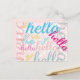Pastel Blue Rosa Grått och Gult Typografi Hej Cute Colorful Hej Postcards