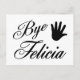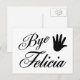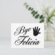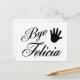 Finare kursivt brev som säger, BYE FELICIA. Med en hand som viftar mot dig.