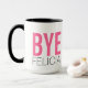 Fetma, svarta och skarpa rosa brev med en hiv-coola som säger att allt är över Internet på sistone. Det här är ett populärt sätt att säga adjö när en slumpmässig eller grundläggande människa lämnar och du verkligen inte bryr dig mindre. Samma utformning finns på båda sidor om mugg, så att ditt budskap lätt kan läsas av dig och av en person av typen felicia, oavsett om du är lämnat ensam eller höger.