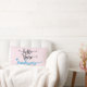 En dubbel färg-kudde i rosa och blå med orden "hej där Handsome" skriven i fantastisk typografi.