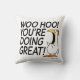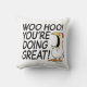 Inget kan vara mer lugnande och inspirerande än ett dekorativ kudde med en entusiastisk, fantasifull kyckling som ropar på dig: "WOO HOO! DU GÖR UNDERBART!" Perfekten sak för dig, för en bra vän, för någon du kärlek.