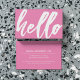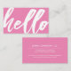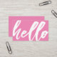 Ett lättat och roligt bubblegum rosa-affärskort med ett "hej"-skript på framsidan. På baksidan finns en plats för din unika affärsinformation.