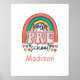 Anpassa denna Hej Förskolan poster med hennes namn. Regnbågsdesign med hjärtan. Kute och färglös.