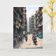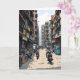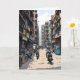 Tecknad i länet Kolkata i Indien Ett hälsningskort som visar hej från Indien med en illustration av en intensiv gatufärd i närheten av byggnad, restauranger, butiker och människor på motorcyklar.
