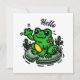 Hej! Cute hand plockade tecknad groda sitta på en liljepad.
