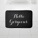 Hej gult svart och vitt typografiskt badmatt. Klassens badrumsdekör. Snygg snyggt manusjett brev. Anpassningsbar mall. Cute bröllop eller födelsedagspresent till student, nygifta, brudar och brudar, make och hustru, engagerat par osv. Söt insida dekoration till badrum i elegant, sovrumsdusch osv. Finns i liten, medelstor och stor storlek. Anpassadets bakgrund färg.