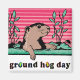 Denna grundtråd dyker för första gången upp i februari för att se om han kan se sin skugga. En fullt gräs med vissa växter är synlig mot bakgrunden av rosa och ro färgad. En ladybug kryper på ett gräs. Groundhog Day trycks under designen. Dessa magneter finns i olika former och storlekar. Finns även i två olika färger.