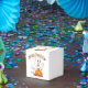 En trevlig leende Ghost, med en leende Pumpkin som hälsar oss för ett lycklig party.