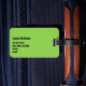Få meddelande! Lustigt "Hej här", svart och vitt med lime green bagagemärke med markerad pil och kontaktinformation på baksidan.