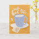 Detta jubileumskort är ett exempel på en kopp av te i en ljus gult och en kindpun som lyder "Hej hett tea Insidan lyder "Låt oss få steamy" Detta kärlek-kort skulle också fungera för Alla hjärtans dag eller andra tillfälle som du vill ha lite flirt.
