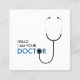 Ett dubbla-sidigt fyrkantigt affärskort för sjukvårdspersonal, som läkare och allmänläkare. Utformningens framsida visar en inledande rad som lyder "Hej, jag är doktor", med ett stetoskop som använder biet i bröstet för att ersätta det andra "O" i ord doktor. Baksidan av det här moderna kvadratiska affärskortet visar ditt namn, ditt yrke och alla dina kontaktuppgifter.