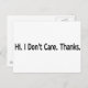 Hej. Jag bryr mig inte. Tack. Vykort