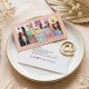 Hej med modern och minimal 5-fotolayoutpersika visitkort