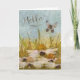 Säg till någon att du tänker på dem med det här "Hej"-kortet som innehåller "smutsiga" vattenfärgsblommor, en fjäril, och ett färgat, tryckt lodrät som är klädd i löv och himlar.