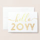 Hej nyår! Skicka familj och vänner glatt upp önskemål för året till kom med elegant riktiga folie-vikta helgdagskort. Alla formuleringar i den här mallen är enkla att anpassa. Färg och typsnitt är också lätta att ändra med Zazzle-konstruktionen verktyg. Kortets framsida är tryckt med riktiga metalliska guld-foliebokstäver. Den marinblå, vita och guld-formgivningen har också kondenserade faux foil-konetti-punkter, modern handskriven stil-skriptkalligrafi, chic minimalistisk vintage-typografi och ett personlig-meddelande. Observera att insida är tryckt på färg, inte metallfolie. Familjen och vännerna kommer att visa det här anpassade kortet för elegant och snyggt i kärlek. Gott nytt år!