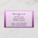 Ett enkelt men effektivt affärskort med ett allmänt tema. Rosan för övertoning på framsidan (ljusare till mörkare). Texten "Hej.." är motsatt övertoning (mörkare till ljusare). Baksidan upprepar övertoningsbakgrunden, men det finns ett stort nästan vitt halvgenomskinligt fält (som kan tas bort) som skapar din personliga text. Texten är svart. All text kan enkelt anpassas och flyttas. Du kan ta bort eller lägga till inslag för att uppfylla dina behov. Du kan även justera teckensnitt, storlekt och färg. Kortet finns i flera färg: blått, teal, rosa, gyllene och grått.