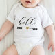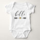 Välkomna din lilla till världen med den här vackra "Hej"-pilen med baby hjärtdräkt. Utformningen har en söt pil och hjärtgrafik med ord "Hej" i ett lekfullt, modernt skript. Den här bodykostymen i baby ger en tankfull och praktisk gåva till nya föräldrar. Om du vill anpassa mallen ytterligare kan du klicka på "Anpassa den här mallen" och sedan välja "Redigera med Design Verktyg". På så sätt kan du lägga till eller ta bort all text, ändra teckensnittet stil, storleka och färg och flytta texten och mönster efter behov. Byskosta för baby, hej baby, hej, pildesign, hjärta, nyfödd bebis, gåva, skript, söta, spädbarnskläder, barnkläder, nyfödda kläder, babydusch, babydusch, gender-neutralt, bekväma barnkläder, Zazzle.
