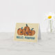 Det här söta hälsningskortet är perfekt för att skicka höst eller hälsning. Den visar tre lappverkspumpor och sloganen "HEJ, PUMPKIN" på framsidan. Insidan av detta kort är tom så att du kan skriva ditt eget meddelande.