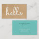 Säg hej med den här elegantens manusförfattare på en rustik papprare bakgrund. Den motsatta har en kontrasterande bakgrund för coolans mynta färgad med skarp vit text för dina kontaktuppgifter. Skapar det som ett affärskort för perfekt för en skönhetsläkare, florist, spa, salon och många andra företag. Designad av Thisisnotme©