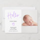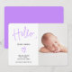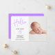 Hej-skript lila foto flicka födelse meddelande