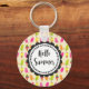 En nyckelkedja med en bild av en sommartid mönster av popsikler och glass i vattenfärger. Hej Summer skrev i ett roligt trendig-teckensnitt inuti ett runt, runt, runt, kvistiskt ram.