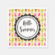 Pappra blöjor med en bild av mönster i sommartid av popsiklar och glass i vattenfärger. Hej Summer skrev i ett roligt trendig-teckensnitt inuti ett runt, runt, runt, kvistiskt ram.