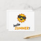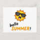 Ett exempel på en söt, rolig kawaii lycklig sol med svarta solglasögon och "Hej Summer"-citat. Sommarsäsongen är alltid en av årets bästa semester och helgdagar. Hur har gulten och orangen färg gjort dig till lycklig?