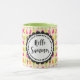 Kaffe mugg med en bild av mönster i sommartid av popsiklar och glass i vattenfärger. Hej Summer skrev i ett roligt trendig-teckensnitt inuti ett runt, runt, runt, kvistiskt ram.