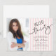 Fira att fylla 30 med stil med denna eleganta inbjudan med modernt typsnitt som läser “Hej trettio”. Mot en mjuk rosa och vit randig bakgrund gör dess rena och eleganta design den till ett perfekt val för hennes speciella dag. Personalisera med ett foto av födelsedagsflickan.