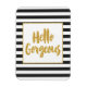 Vacker modern trendig typografi borste skriftcitat. "Hej underbar". Har en snygg guld metallisk glitterram och guldbokstäver med svarta och vita ränder.