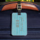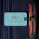 Hej Vackert Boho Blue och Guld Stripe Mönster Bag Märkre. Underbar väg till behållan av bagaget. Typografi med tealblått och rand. Utformad av Bohemian Girl.