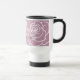 Produktdesignen har illustrationer av ro i rosa och vitt. Den här botaniska designen gör en elegant modern och unik resemugg med personlig. Gift-idé till hennes födelsedag, bröllop, Mor's Day och mycket mer!